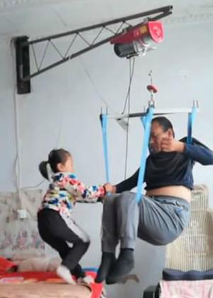 Com essa situação, a garotinha de 6 anos passou a ser como uma cuidadora para o pai, que fica na cama na maioria do tempo e precisa praticar alguns exercícios para a manutenção do bem-estar geral.
